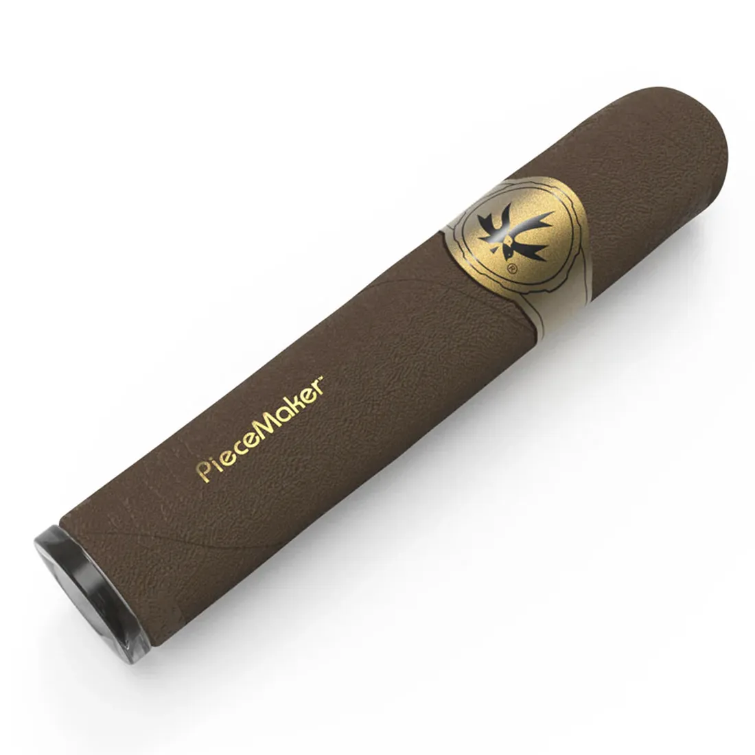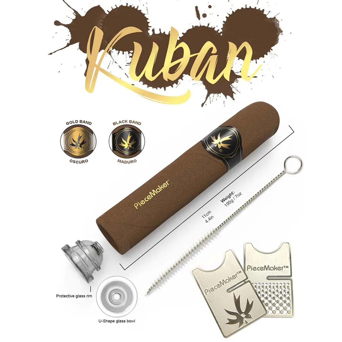 Denne håndpibe fra PieceMaker er formet som en Oscuru cigar, og er lavet af kvalitetssilikone, der også er struktureret som et cigarblad. Piben er fremstillet af fødevaregodkendt og er naturligvis fremstillet af BPA-fri silikone, og hovedet er lavet af varmebestandigt borosilikat glas, som nemt kan tages ud og rengøres. Med piben følger også et praktisk grinder-kort der kan kværne din plante, samt en holder og en rengøringsbørste, så du har alt hvad du behøver for at nyde din rygning som en sand cubansk connaisseur. Denne pibe er også super nem at rengøre, og kan desuden tåle at komme i opvaskemaskinen.