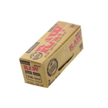 Dette meterpapir er produceret i Spanien af RAW. Det er fremstillet uden klor blegede fibre eller tilsætningsstoffer, og har derudover en naturlig hampe basseret lim, som gør det særdeles øko-venlig. Jointpapiret er vandmærket med et patenteret RAW logo, og netop dette gør at papiret brænder jævnt og langsomt som RAW er kendt for. Rullen indeholder 3 meter RAW paper.
