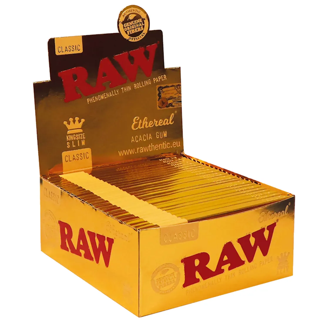 RAW Ethereal King Size Slim er det tætteste du kommer på at rulle uden papir! Dette ultra-tynde papir er skabt til de mest kræsne rygere, der ønsker en næsten vægtløs og ren rygeoplevelse. Hver eneste detalje er nøje gennemtænkt, lige fra papirets gennemsigtighed, og til den naturlige limkant der giver en jævn og langsom forbrænding, uden at forstyrre smagen af dit plantemateriale. RAW Ethereal er ikke for begyndere, men for dig der kræver det absolut bedste, hver eneste gang. Hver pakke inderholder 32 stk.
