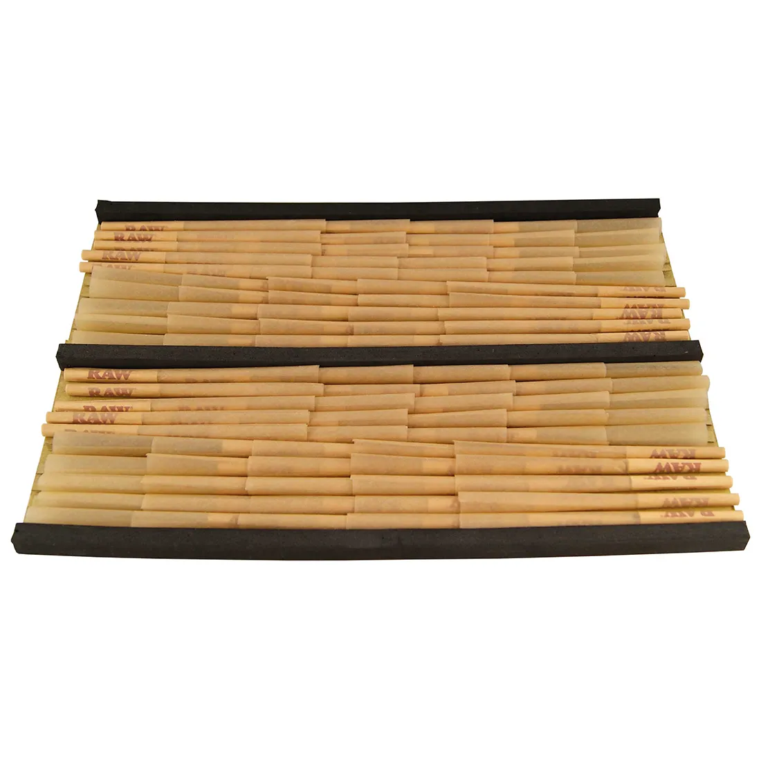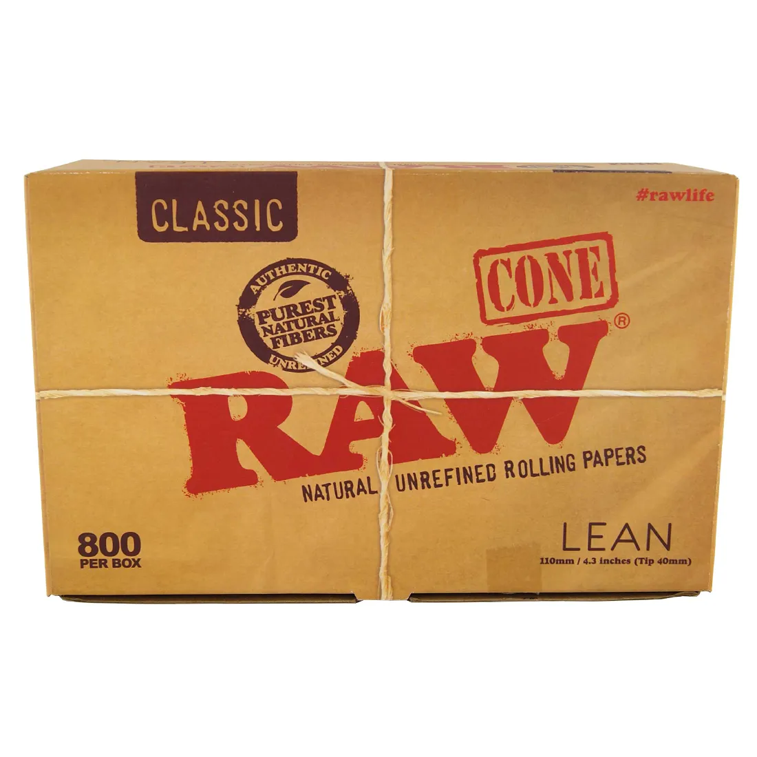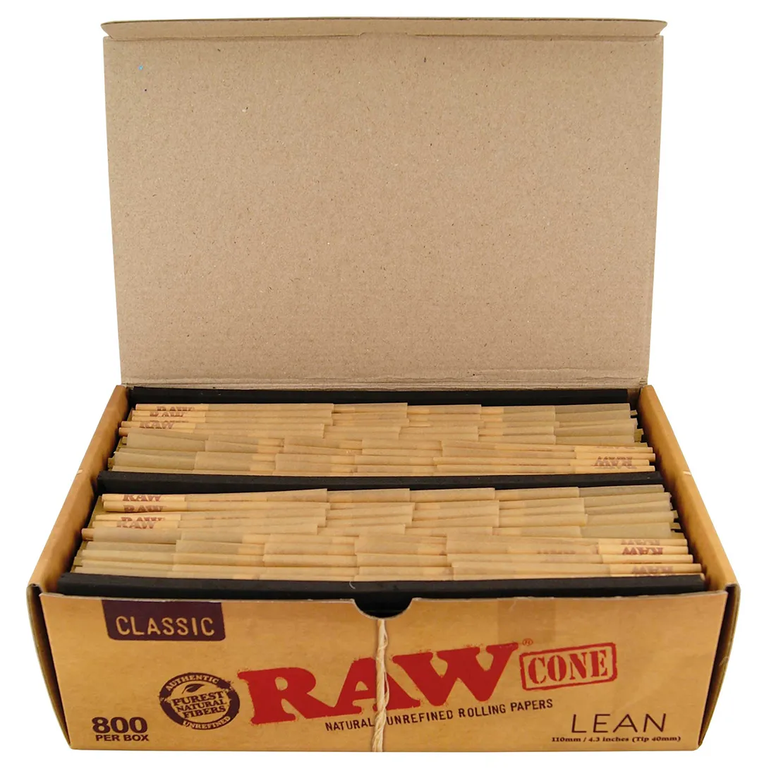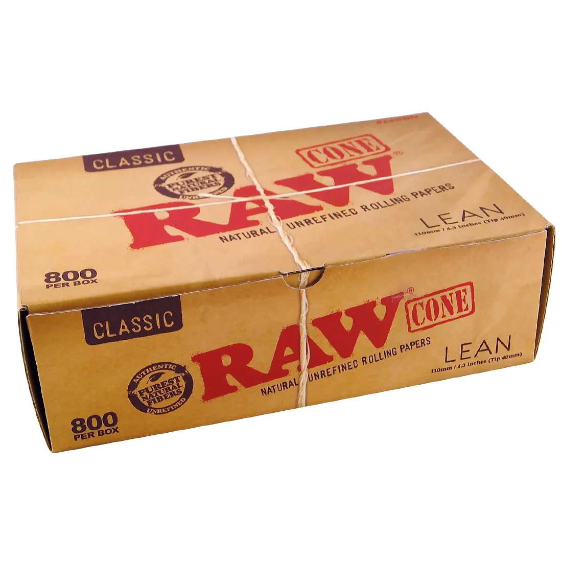 RAW Lean Cones er noget helt særligt, og en favorit blandt mange rygere og RAW fans. De nemlig er lige så lange som de klassiske King Size cones på 109 mm, men bare smallere og med et længere filter, hvilket giver et mere elegant og unikt sug. For at få den rette form, er hvert filter rullet som en spiral, en detalje der gør disse Lean Cones til noget ganske særligt.Cones er fremstillet af det velkendte RAW papir, som er ubleget, tyndt og lysebrunt. Papiret brænder langsomt, jævnt og er uden tilsætningsstoffer, en både vegansk og 100% additivfri måde at lave jointpapir på. Med en kasse på hele 800 cones, er du godt dækket ind, uanset om du ruller til dig selv eller til en hel omgangskreds.