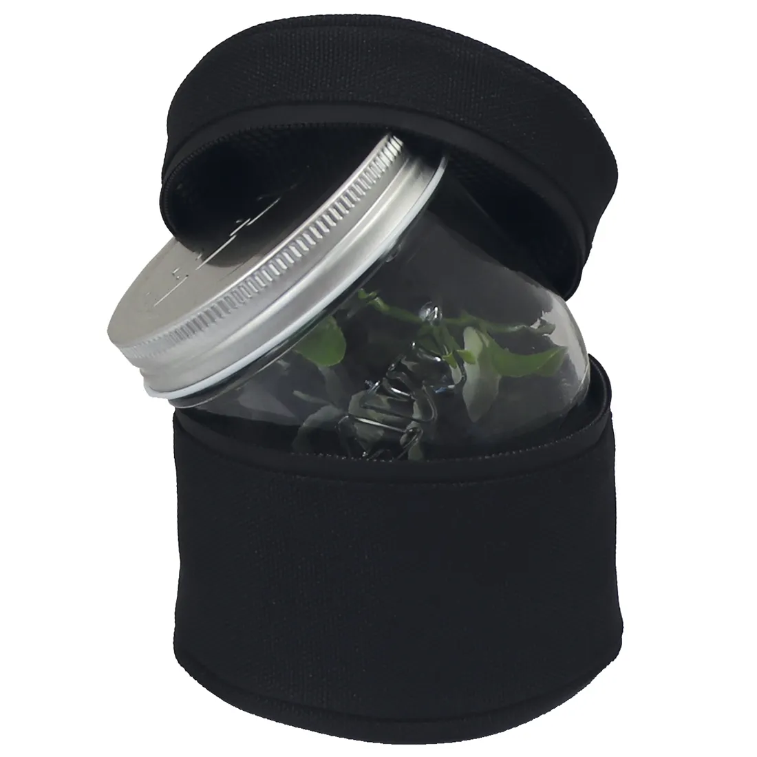 Denne mindre udgave af RAW Mason Jar er perfekt til dig, der vil opbevare dine urter lugttæt, sikkert og diskret. Den klare glasbeholder sørger for at aromaen forbliver intakt, mens det robuste stofetui beskytter mod slag og uheldige tab. Etuiet er desuden udstyret med en smart kombinationslås, så du trygt kan tage dine ting med overalt, uden at bekymre dig om nysgerrige blikke eller fingre. Perfekt størrelse til tasken eller rygsækken, når du er på farten.