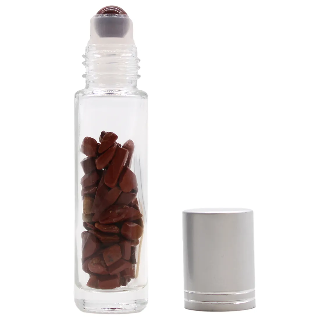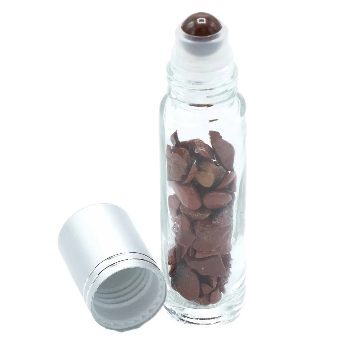 Gør dit udvalg af æteriske olier endnu mere specielt, med denne Roller Bottle med Rød Jaspis. Med et skinnende sølv låg, er denne roll-on nøje slebet for at sikre en glat og jævn oliepåføring, og ikke flere fastklemte eller faldende ruller. Inde i flasken findes små chips af Rød Jaspis, som siges at være en kraftigt beskyttende sten, der er kendt for at vogte mod alle slags trusler. Det menes at den hjælper med seksuelle problemer hos både par og enkeltpersoner, og den bidrager til at bevare fokus, antænde kreativitet og styrke din indre ild af selvtillid. Roller Bottles er ideelle til at fylde med enhver væske ved blot at skrue gummidutten i toppen af flasken af, og opfylde med den ønskede æteriske olier, parfumeolier eller essenser.