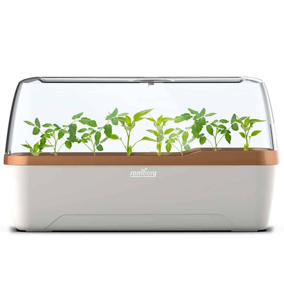 Dette Romberg BoQube mini drivhus er det perfekte valg for alle, der ønsker at begynde at dyrke deres egne planter. Drivhuset er designet med en optimal vandafledning, samt en praktisk vandingsfunktion, hvilket gør det nemt for selv nybegyndere at komme i gang. Den medfølgende plantekasse gør det også muligt at ompotte planter, mens den robuste hætte giver beskyttelse mod dårlige vejrforhold, og samtidig også med til at beskytte planterne mod vandmætning. Denne Romberg plantekasse er fremstillet af robust kobber med 5 års garanti, og er perfekt til ompotning af unge planter. De ergonomisk formede fordybninger i indstiksbunden, gør det nemt at placere og fjerne kildetabletterne.