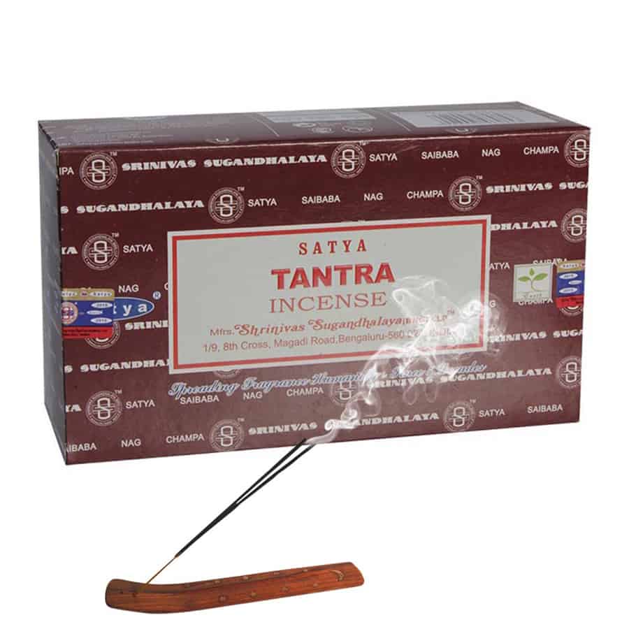 Uanset om du søger røgelsespinde til at forgude Buddha, eller bare skal have erstattet en overvældende duft i hjemmet inden kæresten kommer hjem, så har vi disse velduftende Satya Tantra røgelsespinde til dig lige her! De er fremstillet i Indien af naturligt kvalitets sandeltræ olie, og brænder derfor ekstra langsomt med en langvarig duft. Vi anbefaler at tilkøbe en røgelsespind-holder, til dine incense sticks, så de står mere stabilt og sikkert, og dermed minimere risikoen for at udbryde brand, hvis de skulle “ryge” på gulvet.