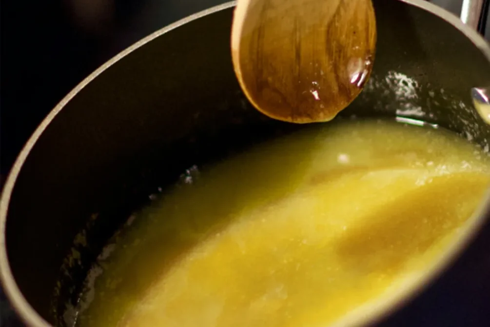 Man opvarmer smør i en gryde, hvorefter det skal simre sammen med cannabis. Efter at have simret i 2-3 timer afkøles det og smørret er klar til brug.