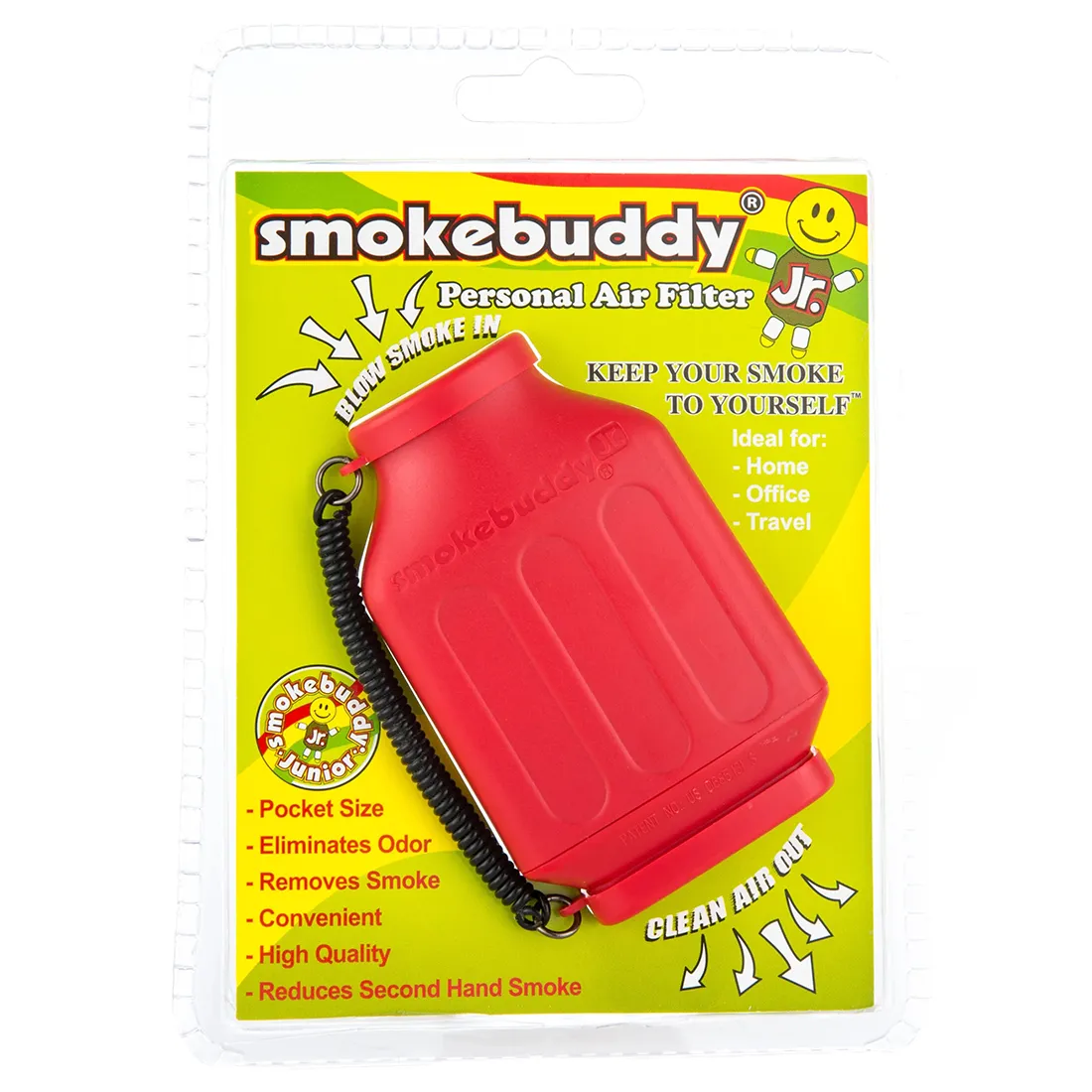 Denne røde Smokebuddy Junior er til dig der vil nyde din bongrygning indendørs, uden at efterlade lugt gener derfra. Når du puster røgen igennem den, fanger det indbyggede kulfilter røgens partikler og aroma, så kun frisk luft slipper ud. Den er især velegnet til lejligheder, små rum, eller hvis du deler bolig med nogen der ikke ryger. Det kompakte format gør den nem at gemme i tasken, og med den medfølgende LED-nøglering har du den altid lige ved hånden. Ét pust ad gangen, op til 200 gange.
