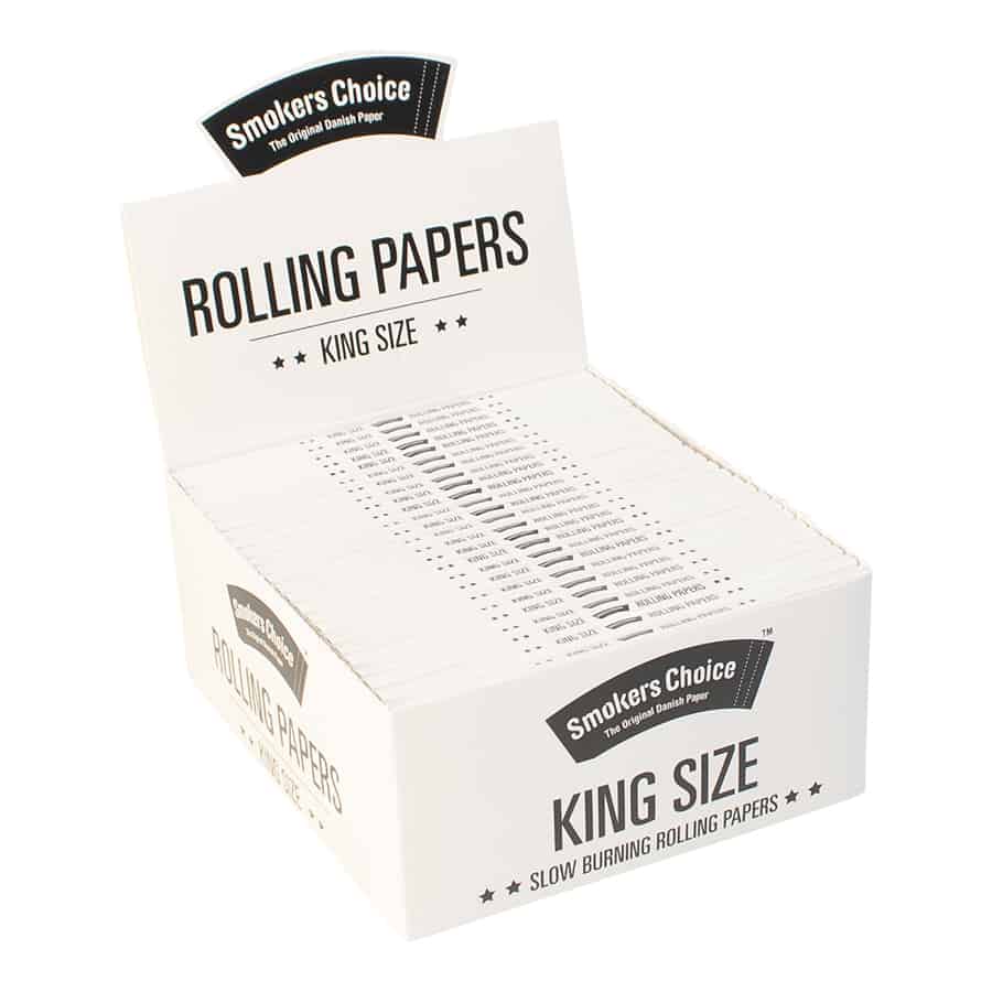 Almindeligt jointpapir fra Smokers Choice i en king size slim størrelse, som er fremstillet af naturligt bleget FSC certificeret papir som brænder jævnt og langsomt. Hver pakke indeholder 34 stk. jointpapir og indeholder desuden en reminder om når du er ved at løbe tør, så du i god tid kan købe en ny pakke.