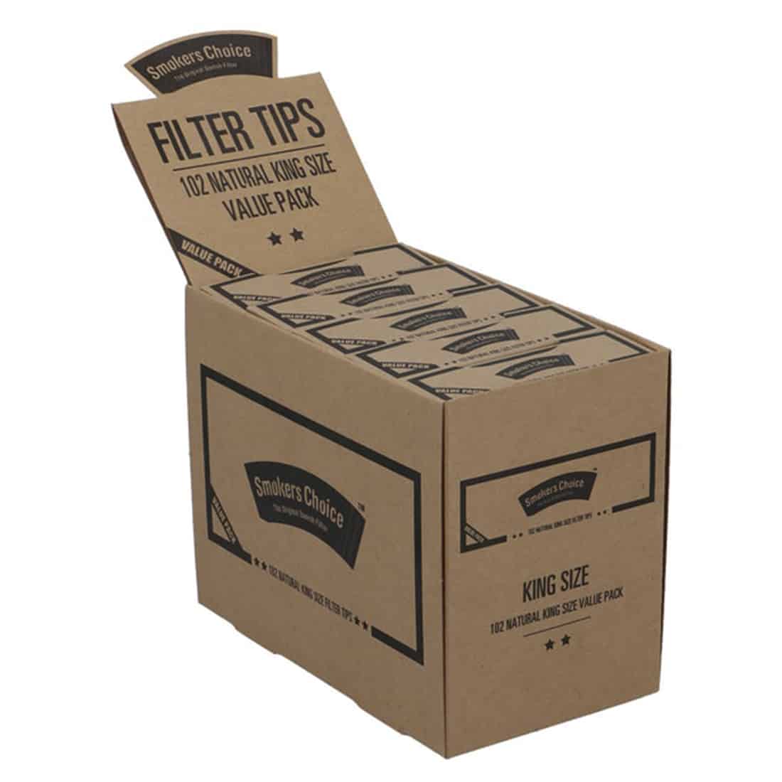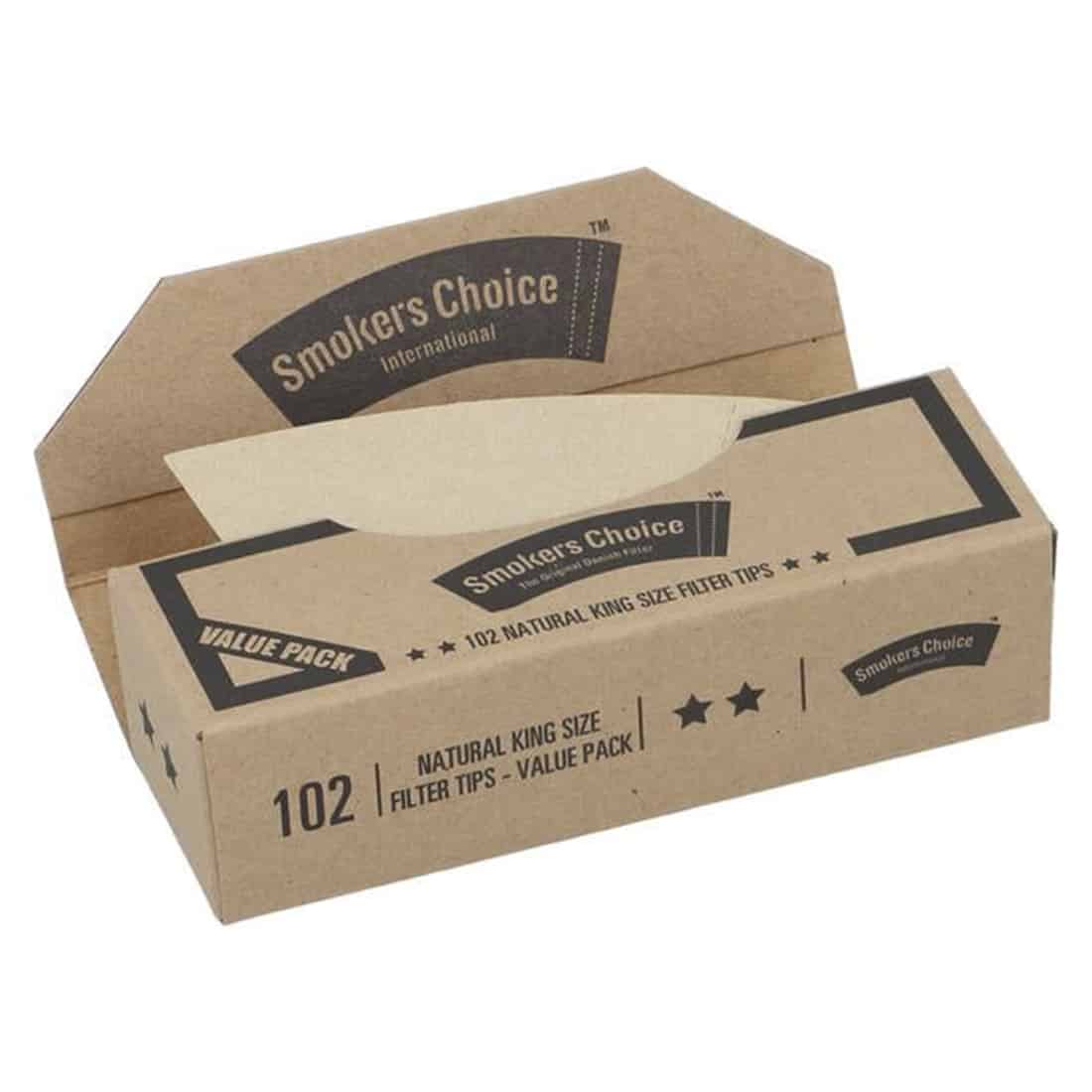 Smokers Choice tilbyder endelig disse miljøvenlige filtertips i en stor udgave. De er fremstillet af genbrugspap, uden brug af kemikalier eller andre tilsætningsstoffer, hvilket gør dem naturlig ubleget. Alle filtre er mellemstore med en mat belægning, og derudover er de perforerede, hvilket gør dem meget nemme at bruge, da filteret næsten ruller sig selv til en konisk form, der samtid gør at tobak ikke ryger igennem filteret. Hver value pack indeholder 102 naturlige filtertips, svarende til 3 pakker almindelige tips, og fås naturligvis også stadigvæk i den klassiske version med 34 st i alt, hvis 3 pakker er for meget på en gang.