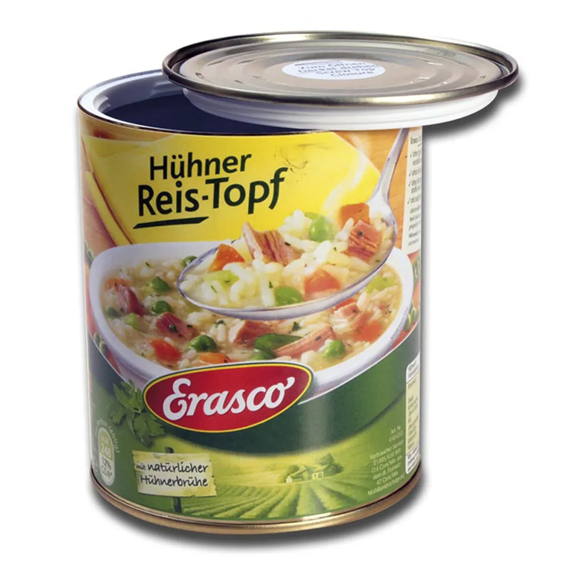 Denne ‘Hühner Reis Topf’ stashboks er det perfekte skjulested, forklædt som en helt almindelig konservesdåse med kylling og ris. Dåsen indeholder et skjult rum på cirka 750 ml, hvor du kan opbevare værdigenstande såsom kontanter, nøgler eller dine urter, som du ønsker at gemme væk på en diskret måde. Den autentiske etiket og dåsens udseende, får den til at ligne en helt almindelig fødevaredåse, mens det skjulte skruelåg sikrer hurtig adgang til dine hemmeligheder. Fremstillet af holdbart blikmateriale, giver denne boks både sikkerhed og diskretion. Bemærk at dåserne er originale, og derfor kan have mindre buler eller slitage, hvilket bidrager til deres autentiske udseende.
