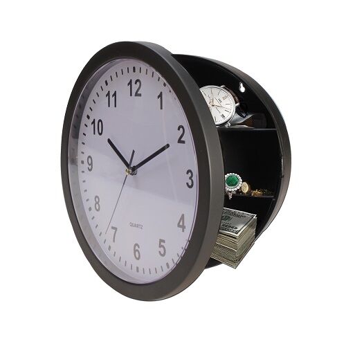 Dette er et velfungerende ur med et indbygget skjulerum, der bærer 3 små hylder så du kan opbevare dine værdier sikkert. Den bruger 1 stk. AA batteri som ikke er inkluderet, og den kan nemt opsættes på en væg med to skruer bagpå.