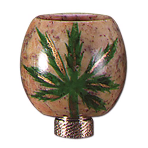 Med dette sten bonghoved, får du et solidt stener hoved med en rund og dybformet skål til dit mix. Det kommer med et stort hampeblad som motiv på siden, og har samtidig et skruegevind, og passer derfor ikke på traditionelle glas bonger, men derimod på mange plastik / akryl bonger, der oftere bruger denne type socket. Vi anbefaler at bruge en rist på 15 mm til dette sten bonghoved.