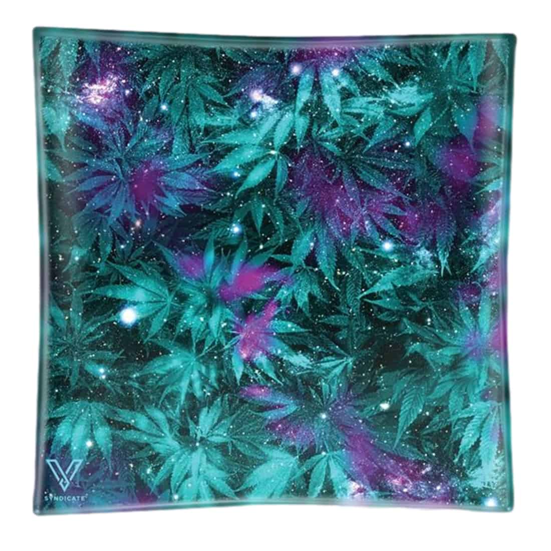 Med dette Syndicate Cosmic Chronic askebæger, får du et stilfuldt askebæger der emmer af kosmisk stil og æstetik. Askebægeret er dekoreret med flotte grønne og lilla hampeblade, der giver en unik og iøjnefaldende visuel effekt. Den farverige og livlige fremstilling af hampebladene, tilføjer et flot touch af naturlig skønhed til dit rygeområde. Askebægeret er lavet af hærdet glas, hvilket giver holdbarhed og en ekstra god modstandsdygtighed over for slag og stød. Det er nemt at rengøre og kan bruges igen og igen, hvilket gør det til en praktisk og stilfuld tilføjelse til dine rygesessioner. Uanset om du er en cannabisentusiast eller bare elsker det smukke og unikke design, vil Syndicate Cosmic Chronic askebægeret helt sikkert imponere med sin kosmiske flair og holdbare konstruktion!