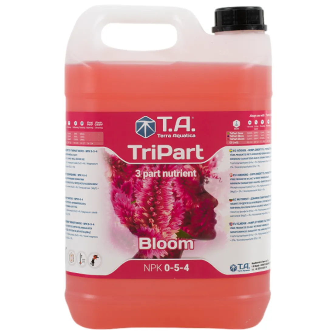 Terra Aquatica TriPart Bloom er den del af TriPart serien, der styrker planternes blomstring. Denne formel er rig på fosfor og kalium, og er designet til at hjælpe planterne med at udnytte deres fulde genetiske potentiale. Under vækstfasen bruges den i mindre mængder, for at fremme de sunde rødder planten har skabt, og under blomstring øges doseringen, for at støtte dannelsen af kraftige og farvemættede topskud.TriPart gødningen er udviklet til alle dyrkere, der ønsker maksimal kontrol over planternes ernæring gennem hele livscyklussen. Ved at kombinere TriPart Grow, Micro og Bloom, kan du finjustere blandingen, så den passer perfekt til hver fase af væksten. Formlen indeholder både makro-, mikro- og submikronæringsstoffer, som alle er chelatered, og på den måde giver en optimal optagelse og stabilitet. Resultatet er en sundere plante, forbedret smag, aroma og en rigere produktion af de essentielle naturlige olier.Dosering : Ryst dunken grundigt før brug. Tilsæt altid TriPart komponenterne enkeltvis til vandet, og bland grundigt mellem hver tilsætning. Brug lav dosering i vækstfasen, og øg mængden i blomstringsfasen for en maksimal effekt. Se Terra Aquaticas officielle doseringsskema for de helt nøjagtige blandingsforhold.