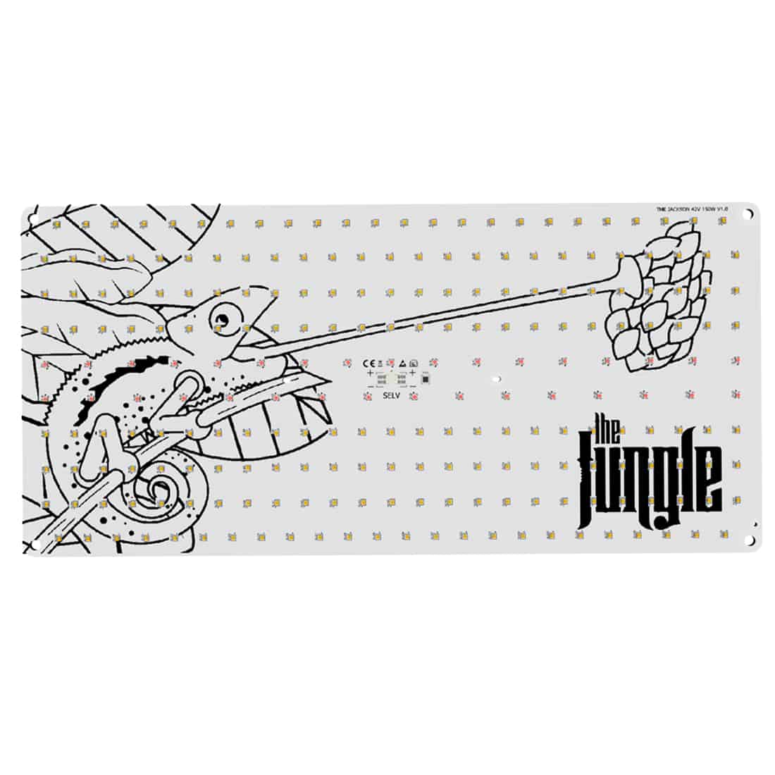 The Jackson fra The Jungle er en LED-lampe med fuldt spektrum lys, der kan bruges til at dyrke planter både i de vegetative og blomstrende faser. Fordi den genererer så lidt varme, og kun forbruger lidt elektricitet, kan planterne udvikle sig hele året rundt, uden at det vælter budgettet. Den er designet specielt til indendørs vækst, og kommer med en kvanteplade med et lavt forbrug, og en høj effektivitet, der er fremstillet med Samsung LED’er med 12,5% blå lys, der har en lang levetid på helt op til 60.000 timer. Til dyrkning af indendørs planter, er dette det perfekte LED lys, full-spectrum giver nemlig planterne alt det lys som de har brug for, til at opnå en optimal terpenproduktion, samt store og flotte blomster. Som nævnt giver denne LED-lampe en god mængde lys til planterne, og kan sættes ekstra tæt på i forhold til traditionelle lamper, uden at skade dem. Når lysintensiteten er utilstrækkelig, udvikler tidlige frøplanter sig bedre i starten. Derfor bør den i de første to uger af udviklingsfasen, være mindst 40 cm væk fra plantens stamme. Du kan derefter bringe lyset tættere på, og placere det 30 cm væk efter denne periode. Til moderplanter anbefales det at lyset holdes i en højde på 40 cm over planten, for at opnå et større lysindfald. Den kommer med en garanti på 3 år. OBS: Der medfølger ikke ophæng til lampen.