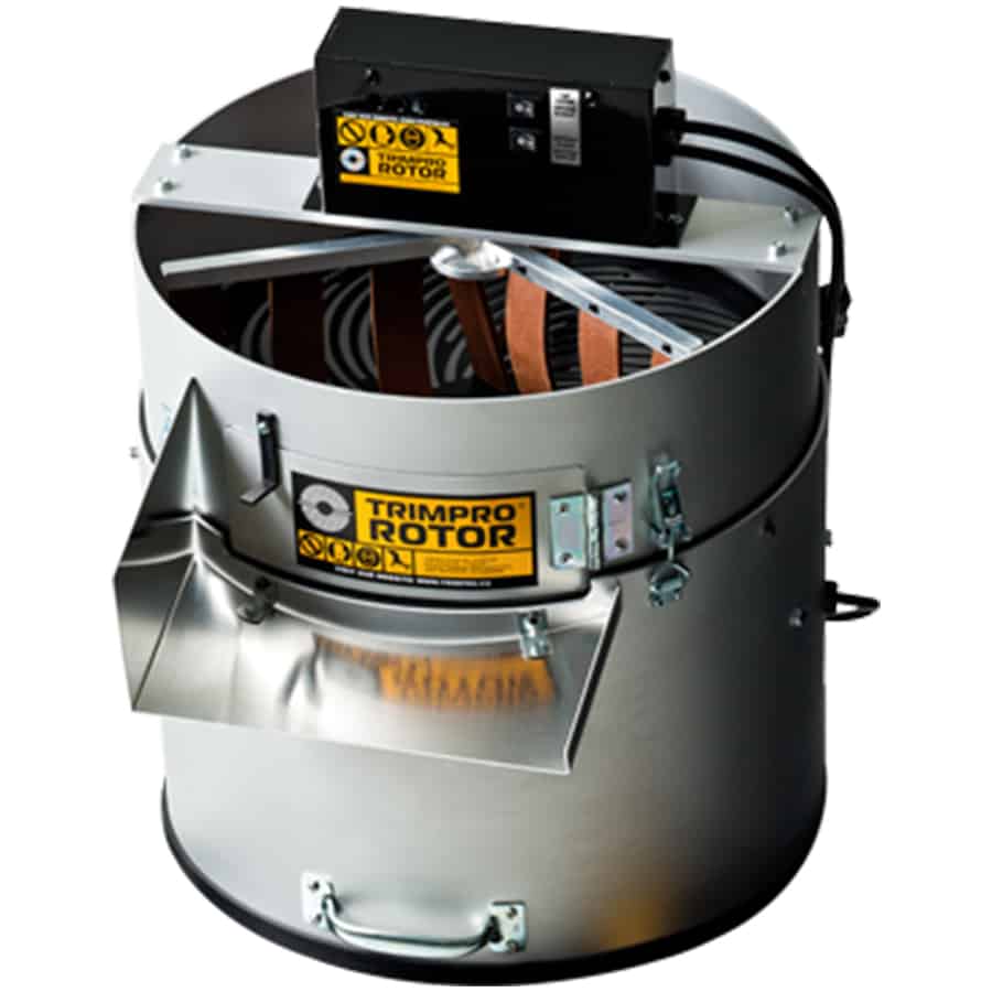 Denne effektive Trimpro-rotor blev designet med kundernes feedback i tankerne, og perfekt til den erfarne hobbydyrker eller til grofirmaer. En skånsom trimningsmaskine der er fremstillet af høj kvalitet, og er perfekt til effektiv trimning af din høst. Bladene er lavet af hærdet stål, og trimmes af de knivskarpe knive, for at skabe perfekt trimmede blomster. Den unikt designede rotor gør det lige så nemt at tømme rotoren, som at åbne døren! De pænt trimmede blomster kommer forsigtigt ud af den øverste cylinder, mens maskinen stadig er i drift. Dette gør det muligt at fortsætte produktionen uden afbrydelse. Knivene kan justeres til at passe til enhver omstændighed, ligesom på alle Trimpros maskiner. Fjern blot de friske topskud fra grenene, og læg dem i den øverste beholder, og lad så rotoren tage sig af resten.