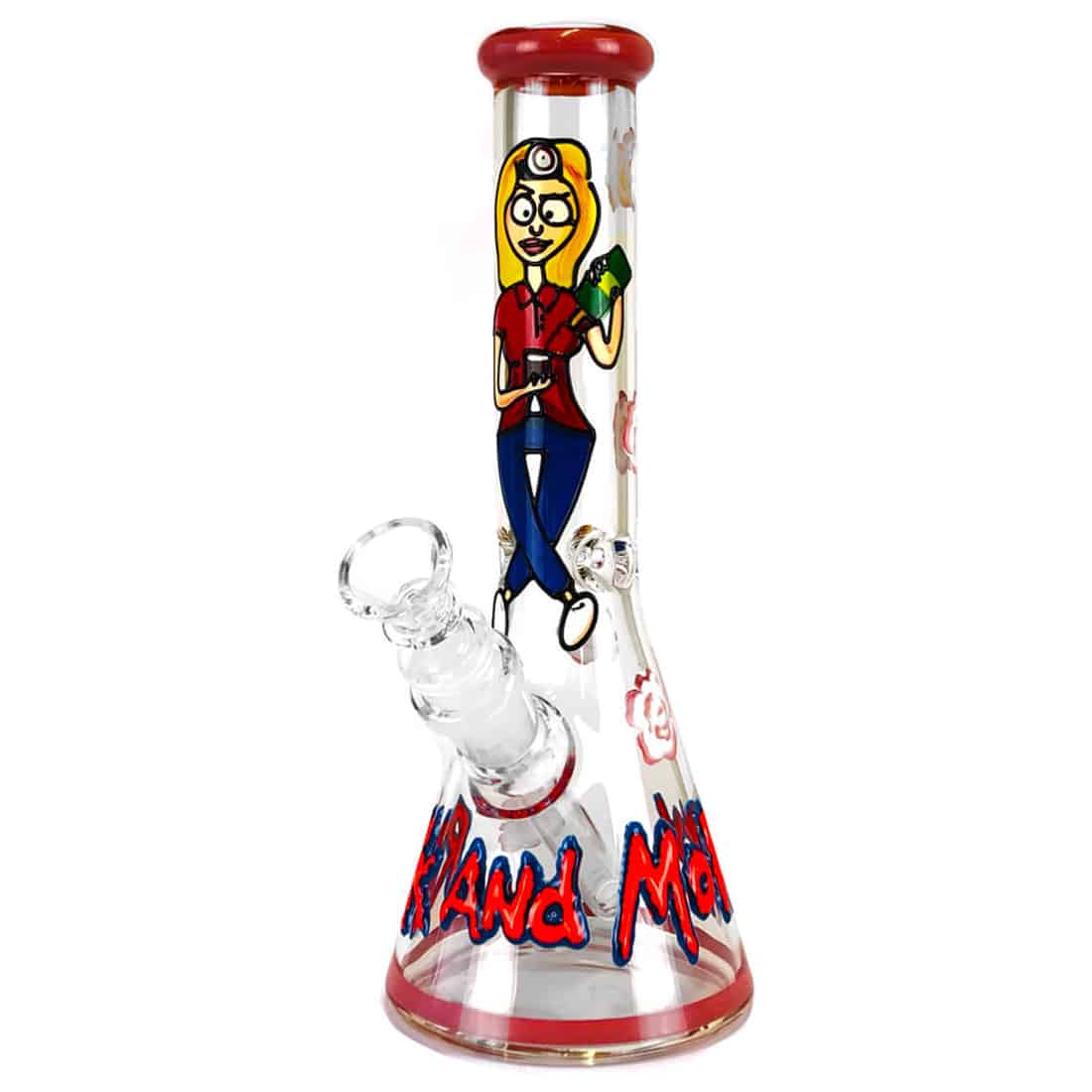 Denne håndlavede glasbong er produceret for at imødekomme de hardcore tegneserie-fans, og kommer med en højde på kun 25 cm. Cartoon Girl-bong’en består af en cylinderformet borosilikatglaskolbe, med en slamrør og tilhørende SG 14,5 mm bonghoved. Den har også en isfanger, så du kan køle din røg ned ved at placere op til 3-4 isterninger langs halsen. Når munden slår til, giver det rundformede mundstykke en behagelig oplevelse, og det sjove design vil helt sikkert fremkalde et godt grin, når du inviterer venner eller veninder over på et hoved! Den ideelle første bong til tegneserie rygere, eller bare serierygere, der ønsker en sjov og anderledes bong til deres samling. Husk også hvis du ikke allerede har dem, at få et par 12,5 mm riste med i købet, da disse vil være nødvendige for at undgå at spilde din dyrebare bongmix. God ryger og tegneserie stener!