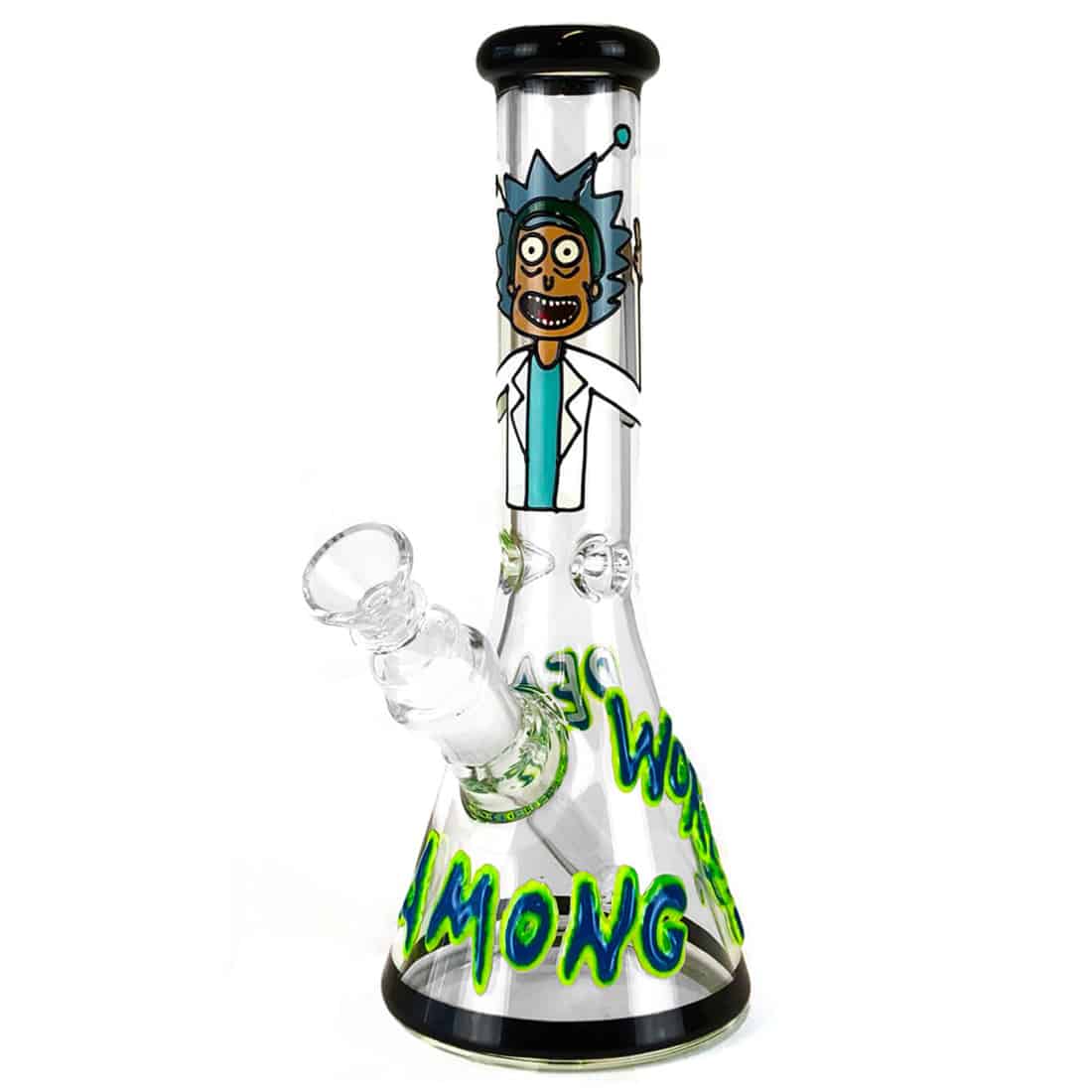 Denne Cartoon Scientist bong er kun 25 cm høj, og er lavet til at tilfredsstille de mest indædte tegneserieentusiaster! Den består af en cylinderformet borosilikatglaskolbe, med et tilhørende slamrør, samt et matchende SG 14,5 mm bonghoved uden hank. Den har også en isfanger, så du kan køle din røg ned ved at putte tre eller fire isterninger ned langs halsen. Når det er tid til at slå til, giver det en behagelig fornemmelse for læberne på det afrundede mundstykke, og det stilfulde udseende vil med garanti fremkalde et godt grin, når du tager venner med over til et hoved! Den ideelle første bong til alle tegneserie fans, der leder efter en sjov og usædvanlig bong til deres nye samling. Sørg også for at få et par 12,5 mm riste med dit køb, da disse vil være nødvendige for at forhindre spild af din dyrebare bongmix når du ryger på den. Gode vibes og tegneserie tid til alle stoners!