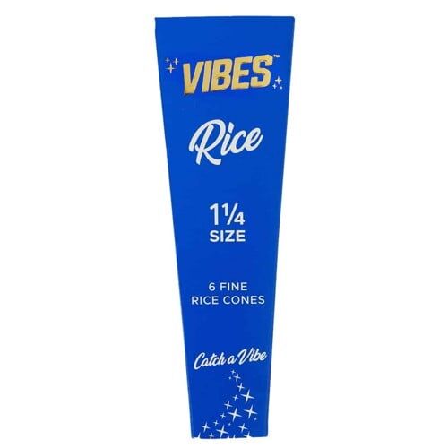 Disse Blue Vibes Cones kommer i en kort 1 1/4 størrelse, og har en længde på 83 mm. De er fremstillet af langsomtbrændende rispapir, og efterlader kun en lille mængde aske fra papiret. Hver pakke indeholder 6 stk Vibes Cones.