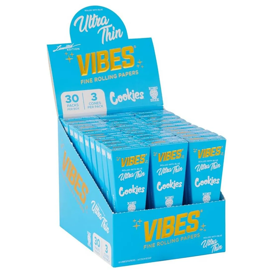 VIBES x Cookies King Size Slim Cones er et samarbejde mellem to kendte mærker inden for cannabis-kulturen. Disse cones er lavet af ultra tyndt papir, hvilket giver en lettere og mere diskret oplevelse. Pakken indeholder 3 cones i king size slim-format.