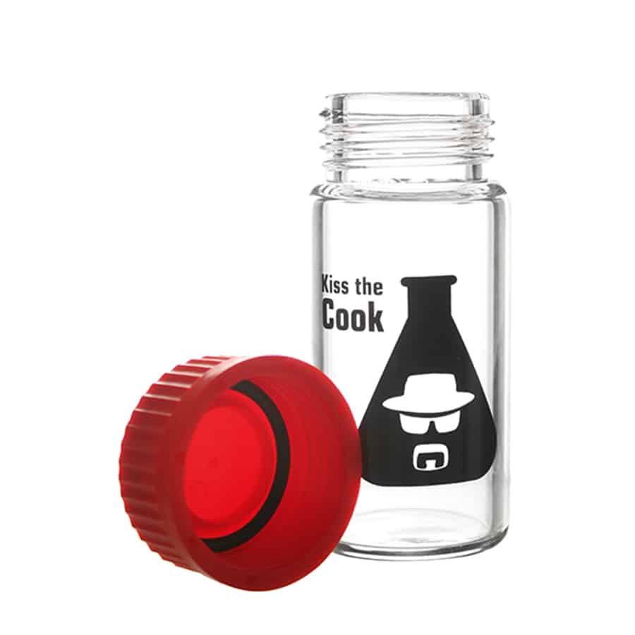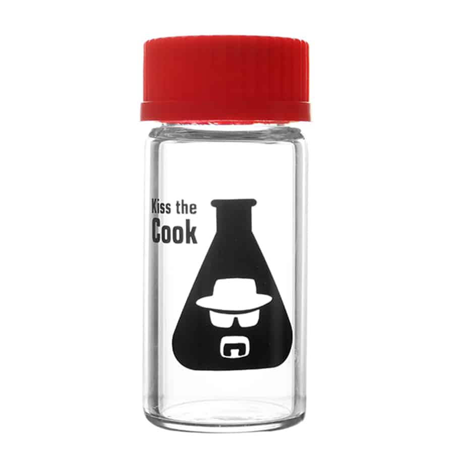 Hvis du mangler en sjov opbevaringsbeholder, og er elsker Breaking Bad serien, så bliver du helt sikkert vild med denne Heisenberg glas beholder fra Weedjar, med et “Kiss The Cook” motiv ved siden af et reagensglas. Den egner sig ideelt til opbevaring af dit stash, og er fremstillet af glas i en god kvalitet, der kan tåle varme op til 140 grader, hvis du tilfældigvis skulle glemme den i ovnen af mærkelige årsager. Låget er et skruelåg, og er fremstillet af silikone i en rød farve, og kommer med en forseglingsring, der sikrer at det sidder helt tæt. Hvis du vil slippe for besværet med at lufte ud dagligt, vil vi anbefale at tilkøbe 2-vejs luftfugtighedsposer fra enten Boveda eller integra Boost, der hjælper med at holde den helt rigtige fugtighed i beholderen.