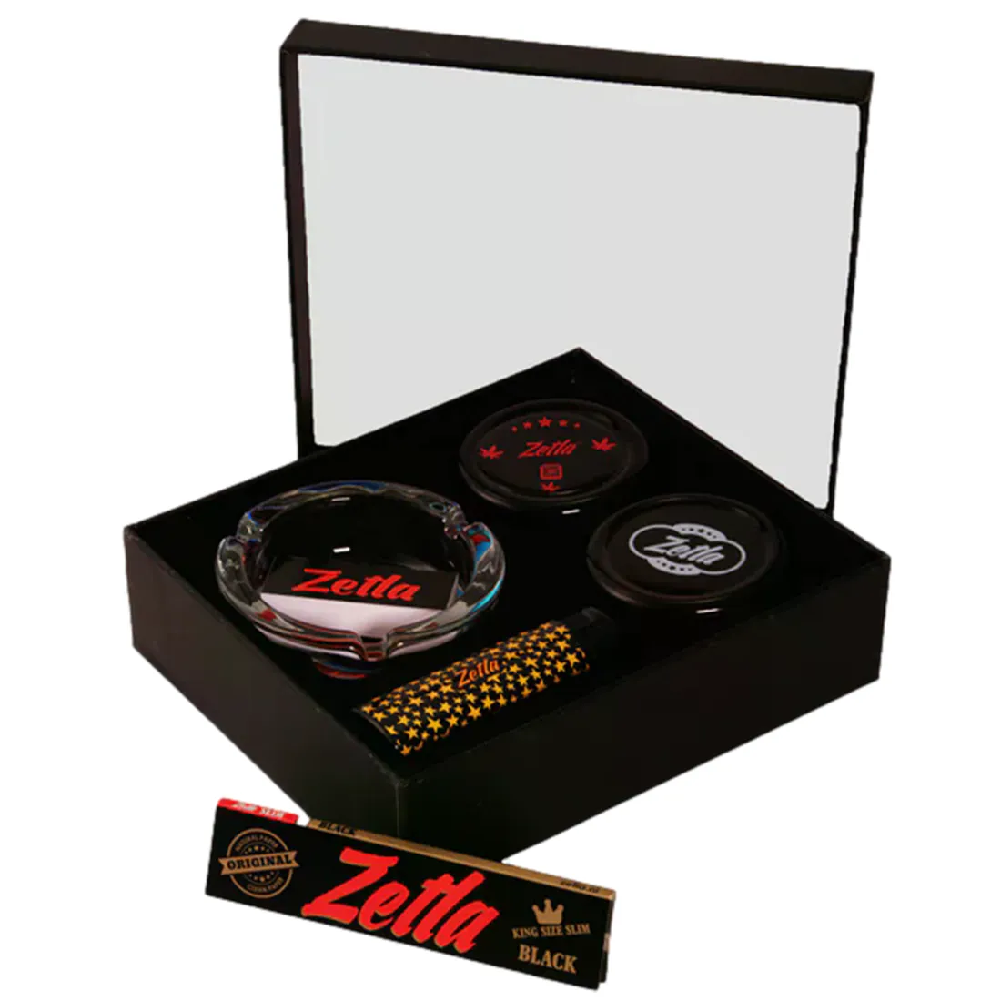 Denne sorte gaveæske fra Zetla, er til dig der vil give en anonym og brugbar gave til din ryger ven eller kæreste. Æsken er kompakt, derfor nem at have med rundt, og leveres pænt samlet, så du bare kan skrive et navn på og række den videre når der er noget at fejre. Indeni ligger et askebæger til bordet eller altanen, en plastik grinder der klarer findelingen af dit plante, og en pakke med lige filtertips, en lighter og en pakke jointpapir. Modtageren har derfor alt basisgrejet samlet ét sted, perfekt til den første opsætning derhjemme, som ekstra sæt i tasken, eller til sommerhus weekenden hvor det er rart at have det hele liggende klar.